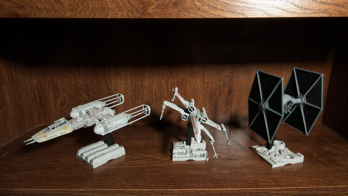 In order to create the exhibit's backdrop, I built several Star Wars model kits and photographed them to provide high resolution images which I could use to composite the final artwork.